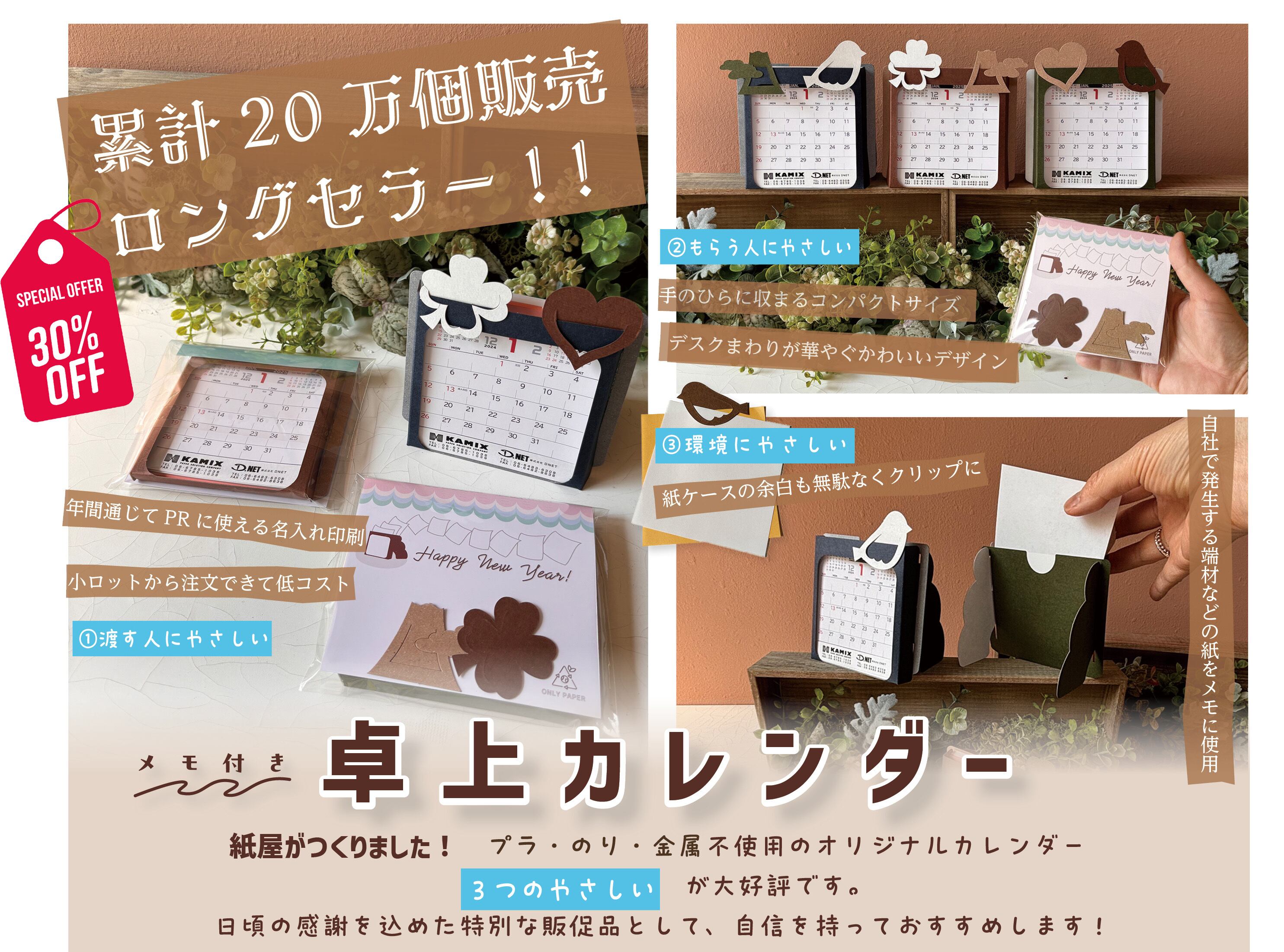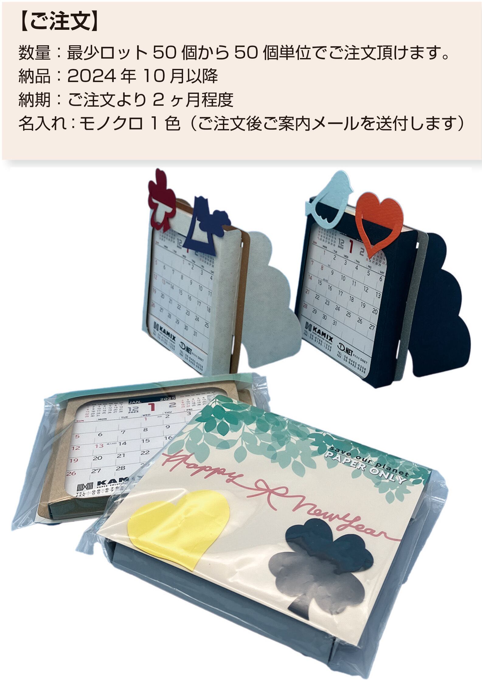 紙屋が作る(プラ・のり・金属不使用)オリジナルカレンダー